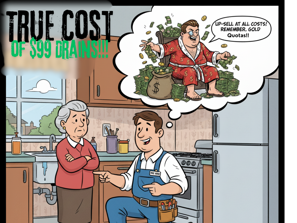 If you’ve seen a company advertising drain cleaning under $99, it’s not a deal — it’s a tactic. Let’s break it down with real numbers: